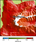 surrounded by a chain of mountains. The digital elevation model was obtained
